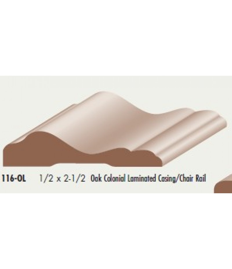 116-OL 1/2 x 2-1/2 Oak Colonial Laminated Casing/Chair Rail